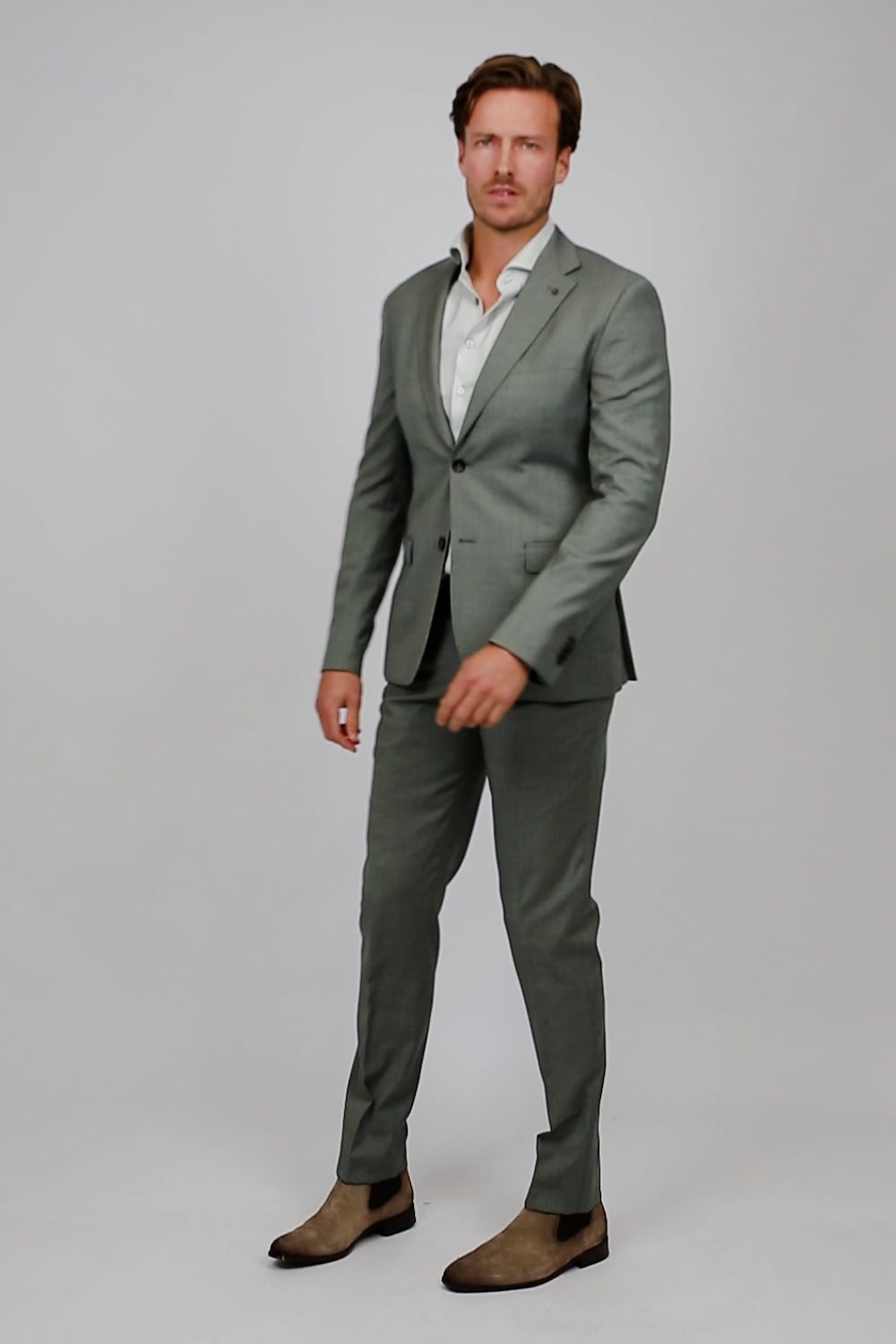 Suitable Toulon Suit Wool Green Suitable Toulon Suit Wool Green in the color Green with a fit Slim-Fit is made from Wool and Stretch with a Plain design it comes from the Suitable Orange - Smart collection.Fitting